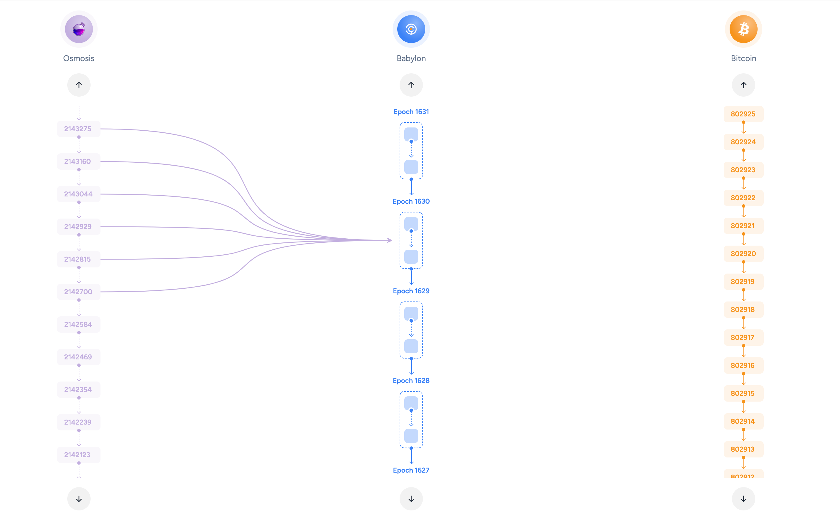 Therefore, Babylon is designed to be middleware that solves the scalability issue with checkpointing. For example, Osmosis checkpointing first on Babylon, then on Bitcoin.