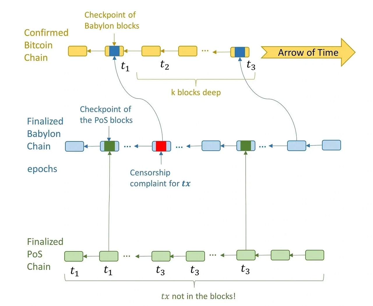 Indeed, PoS and PoW possess complementary strengths, and a well-designed architecture can harness the advantages of both. Babylon aims to create a mutually beneficial solution for both PoS and PoW chains. The general concept of recording event timestamps in a child chain on a parent chain is referred to as checkpointing, and the transactions that record these events are known as checkpoints. Babylon is implementing checkpointing for PoS chains on Bitcoin.