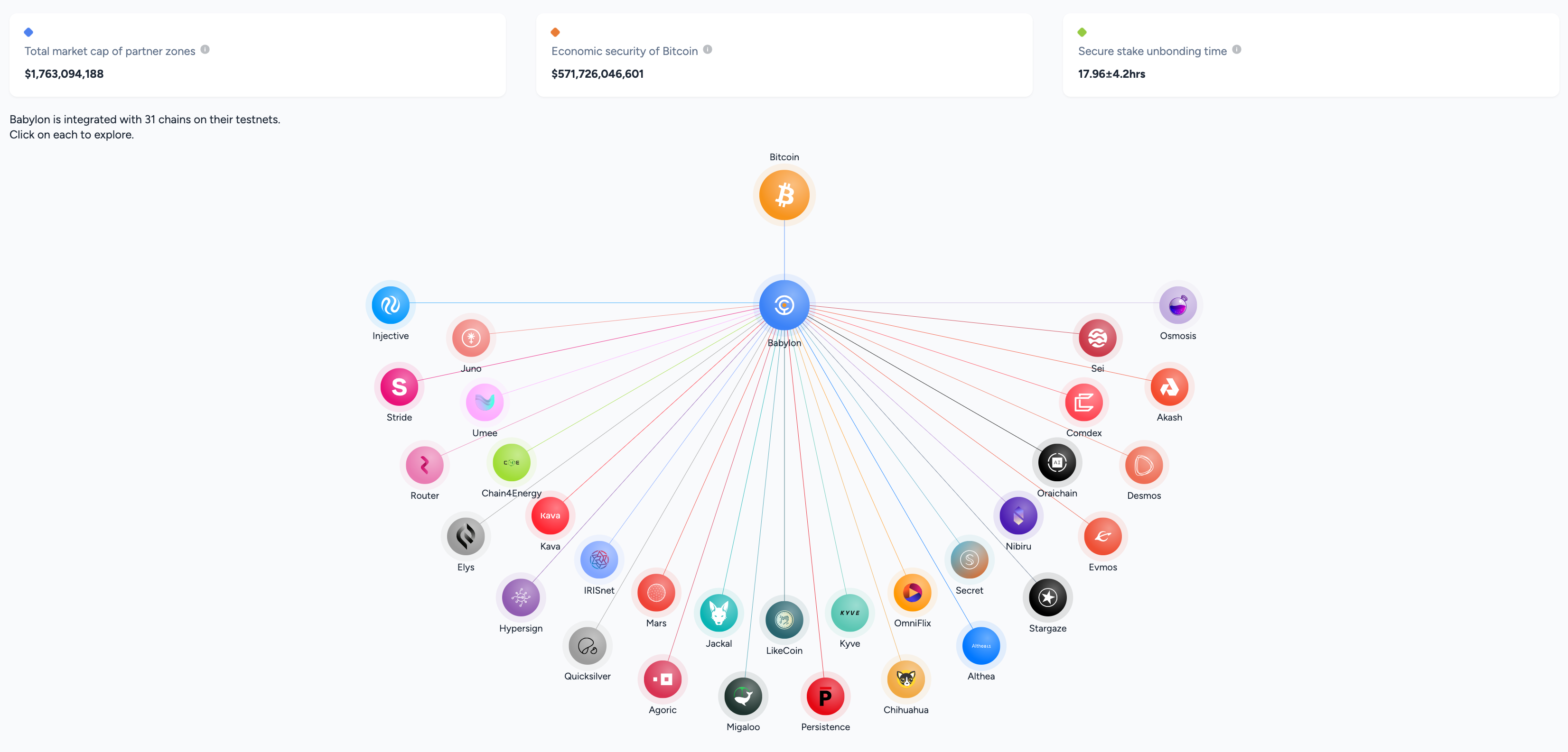 - Babylon has integrated multiple Cosmos chains as a Cosmos hub.