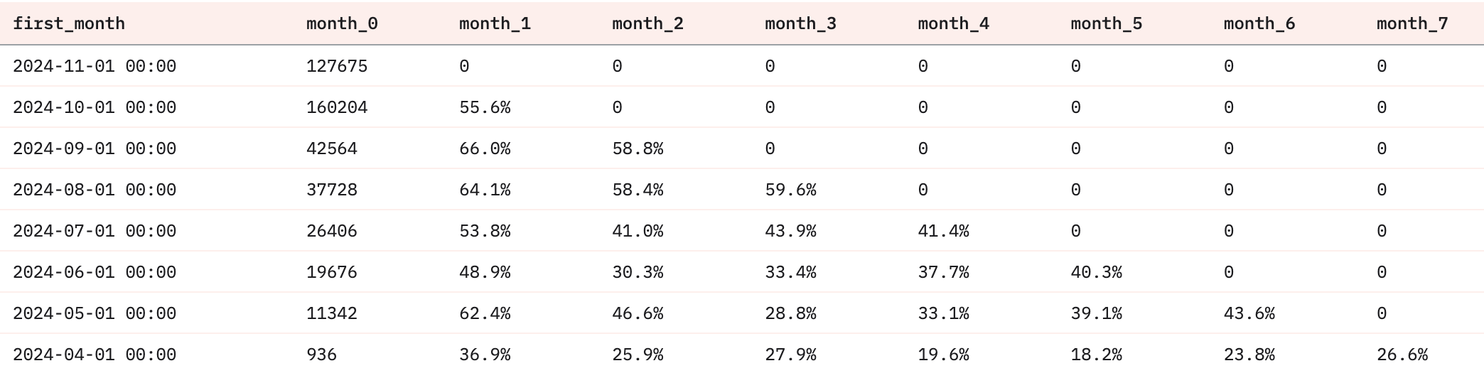 - User base is not continuously loss, which is stable, and many of them of returning users. DAU around 30K, WAU around 120K, MAU 320K.