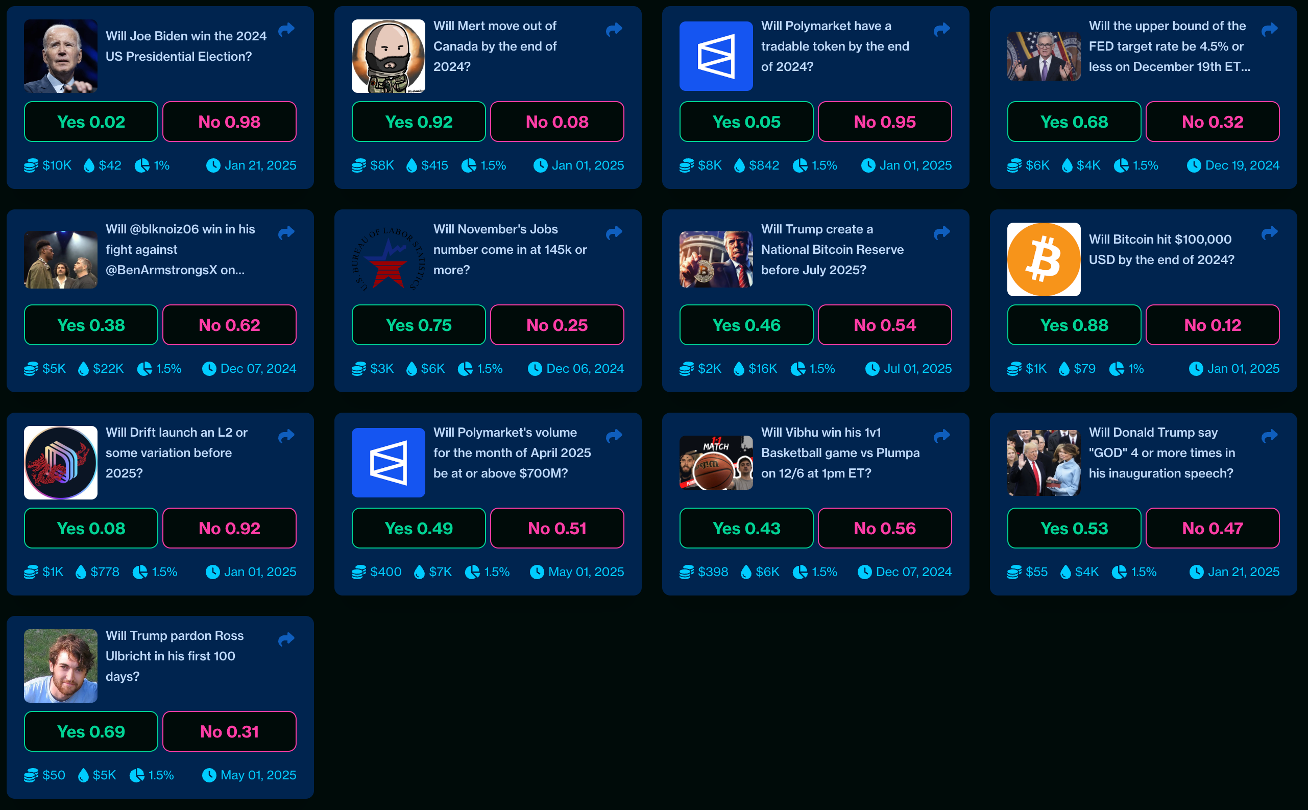 - Deeper liquidity and more stable odds for major events, as traders from anywhere contribute to price discovery. Traditional prediction markets often had siloed user bases