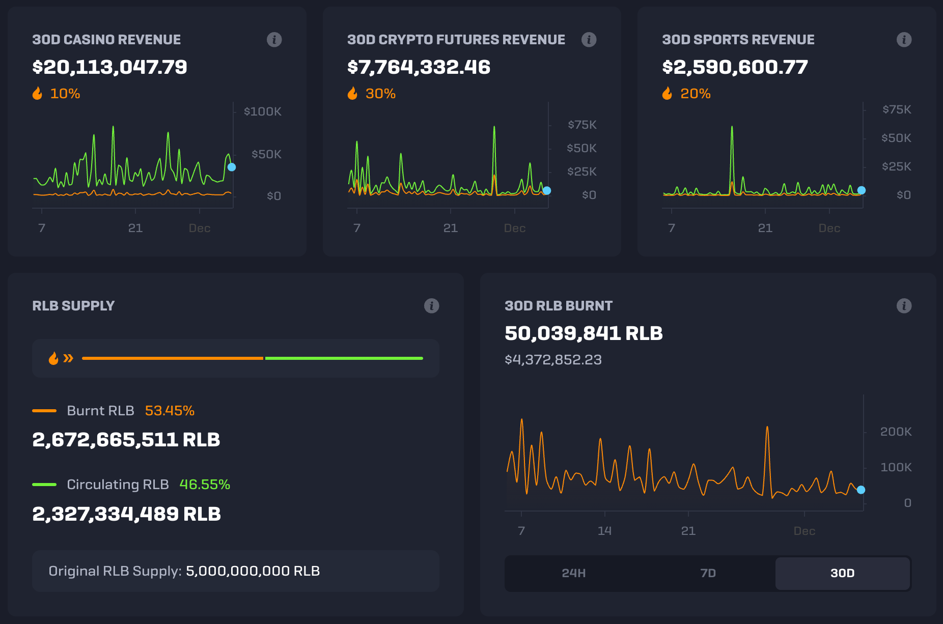 - Buyback and burn: 20K/H, 480K/D, already burned 894M $RBL~100M USD