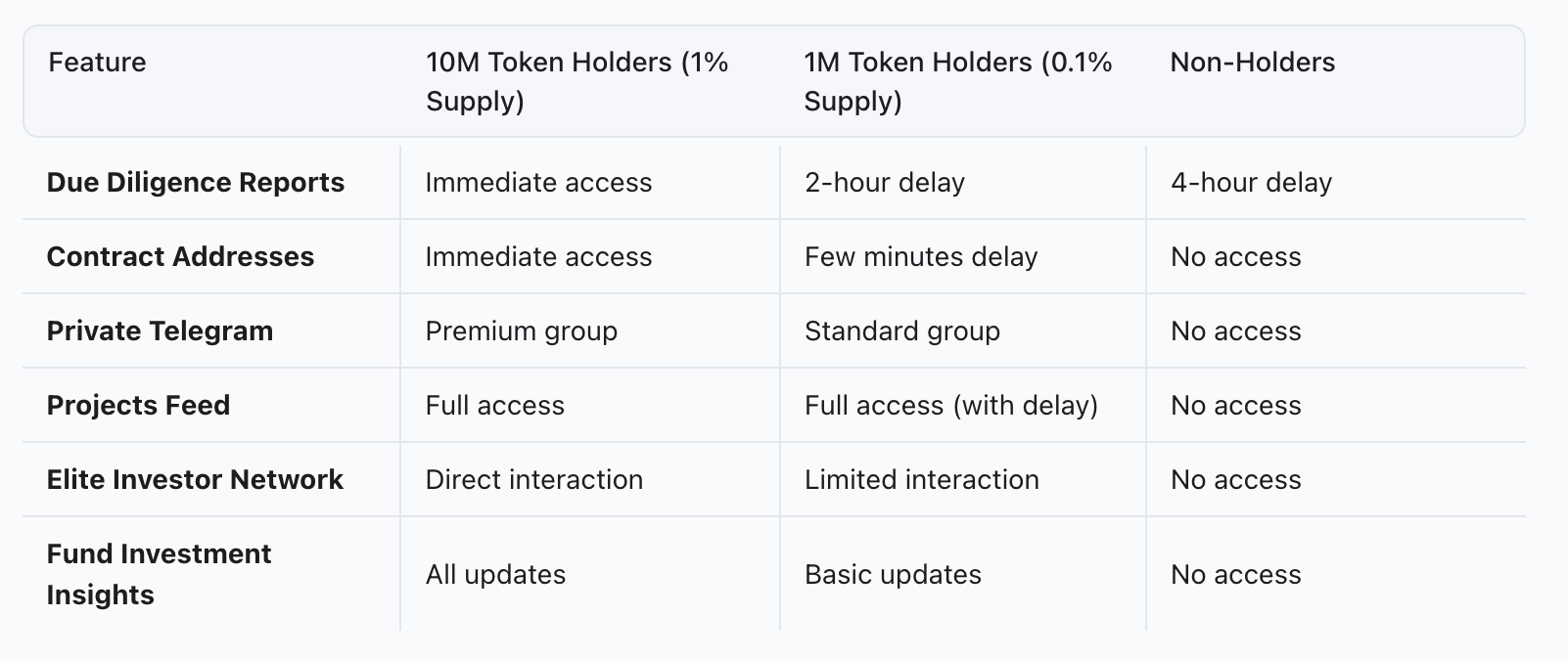- Token Utility: 1M and 10M Private Telegram Group