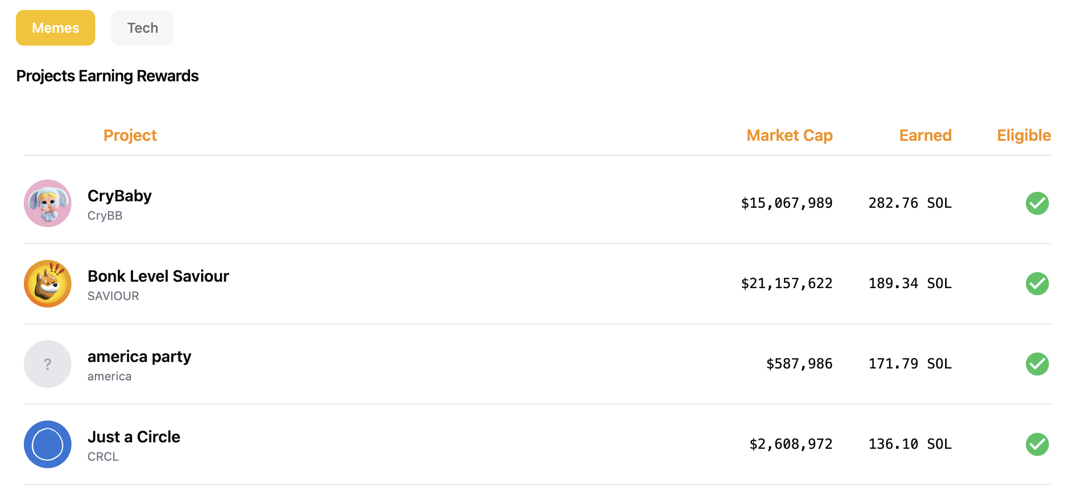 | Pool SOL Balance | USD Value of Pool | Pool % Left | Market Cap |