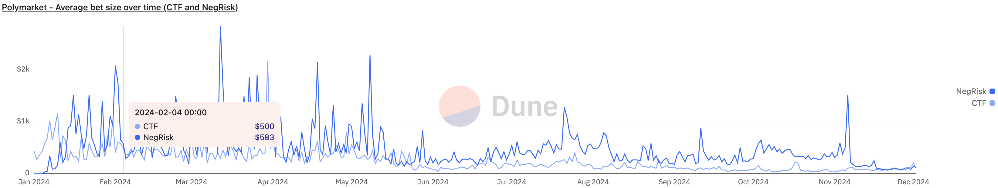 - Volume and Transactions dropped 80% after Election 2024, Daily Volume is around 50M