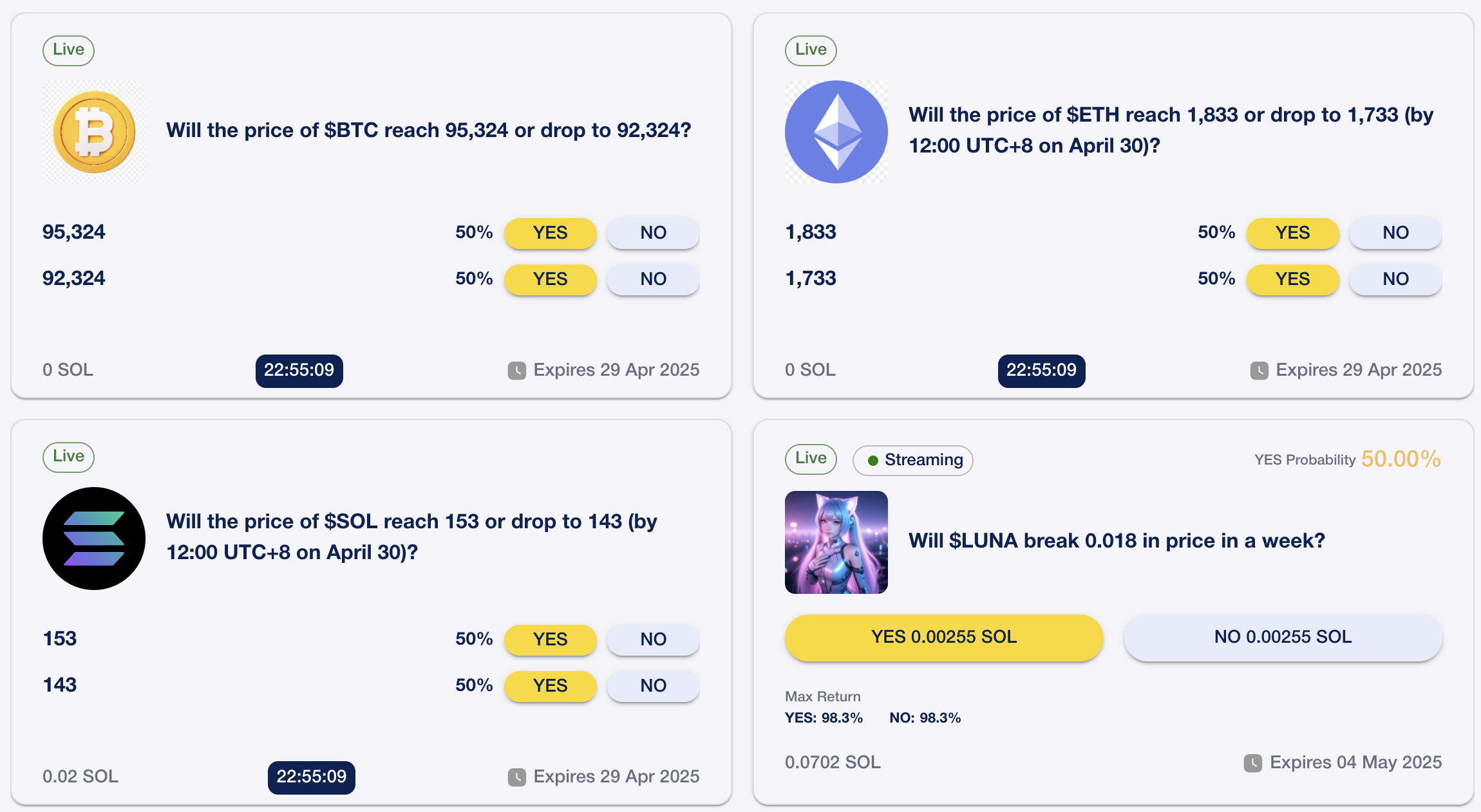 - Outcomes: 2 for Binary Market