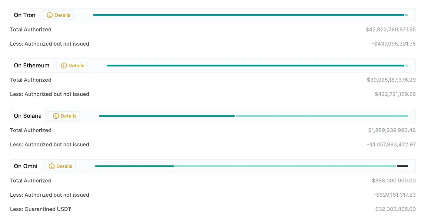 We can see the rise and fall of Omni-USDT, which was the first asset on Bitcoin using OmniLayer, also the first USDT token in 2014. As of now, Omni-USDT is still the fourth biggest issuance. While the total authorized amount is 888M, 629M among them are not issued. The liquid amount is only 227M. For comparison, Tron has 42B, Ethereum has 39B USDT. Therefore, we may see the slow retreat of Omni-USDT in the near future.