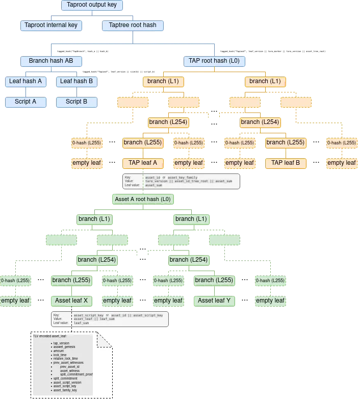 In essence, Taproot Assets draws on the Taproot and the rollup idea. Developers can embed arbitrary asset metadata within an existing output using Taproot, while Taproot Assets only store the root of MS-SMT (merkle-sum sparse merkle tree) on Bitcoin using the rollup idea.