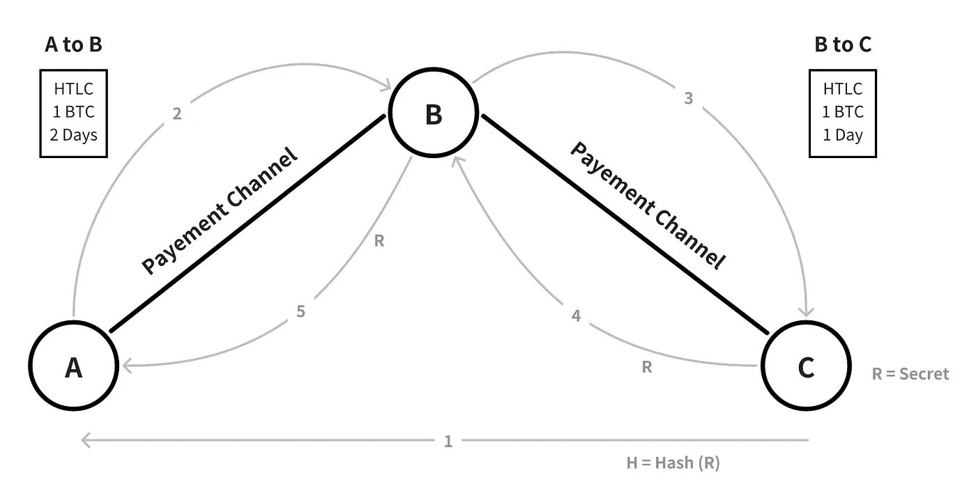 The Hashed Timelock Contract (HTLC) is a mechanism that enables atomic transfer in the network and supports multi-hop transfer. The two main requirements for lock contracts are: