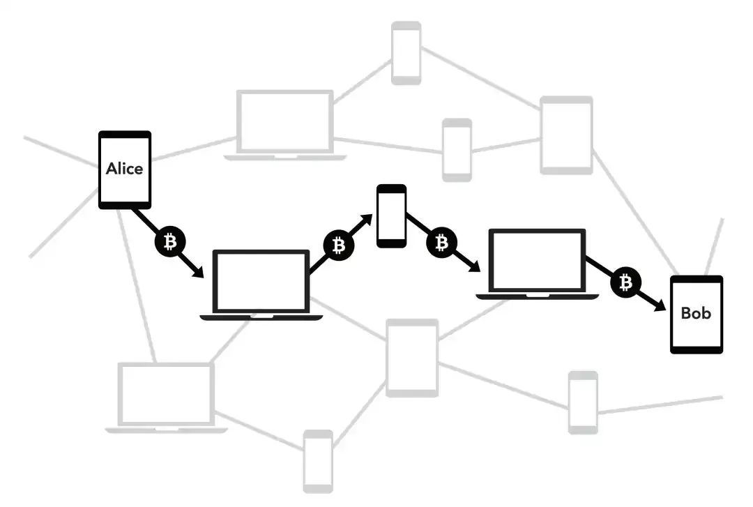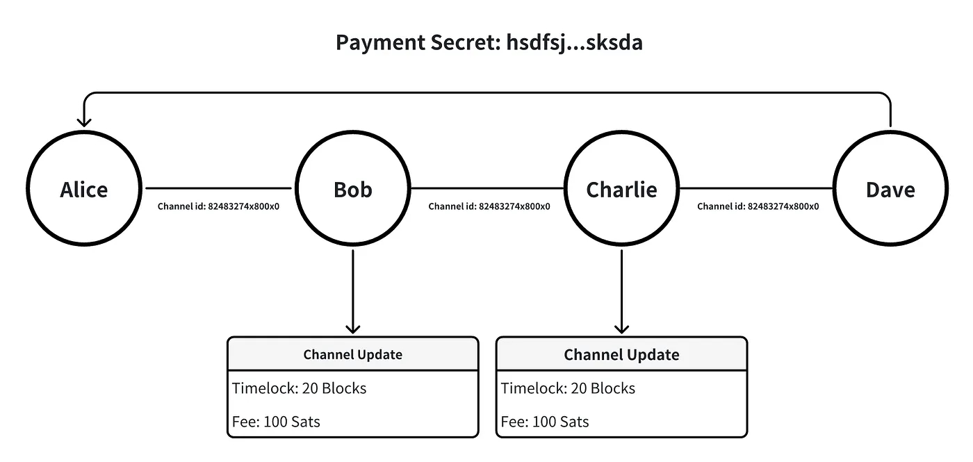 By using this method, we make sure that Charlie receives the BTC first and there is no significant risk of corrupting the transfer. However, there are new challenges, such as reducing the exposure of the transfer route. The Lightning Network uses onion routing to solve this problem. The routing is easy to understand by looking at the name. The secret is wrapped layer by layer and hidden inside. Each layer only knows the outer and inner layers, and cannot tell what the global onion looks like.
