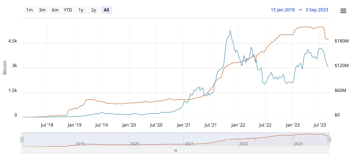 Although the Lightning Network has gained traction in recent years, with more users and merchants adopting technology, we should expect much greater growth driven by user-friendly Lightning wallets and tools, making it easier for users to transact on the Lightning Network. Currently, the Lightning Network’s capacity is only 4.6K Bitcoin, which is only 0.02% of BTC circulating on the Lightning Network.