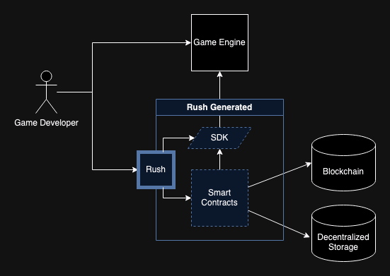 What sets Sonic apart is its integration of the Rush RCS Framework with its gaming engine, specifically designed for Full Onchain Games (FOCG) and Autonomous Worlds (AW). The Rush framework serves as a crucial bridge between the gaming engine and blockchain infrastructure, managing both smart contract interactions and storage layer connections. This integrated approach creates a comprehensive environment for blockchain game development, enabling developers to build complex gaming experiences while maintaining efficient blockchain interactions.