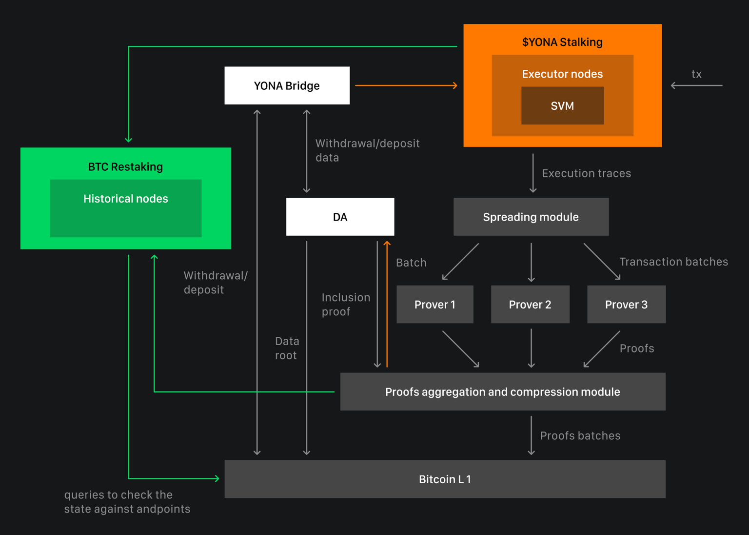 Yona breaks new ground by implementing SVM on Bitcoin, combining RISC Zero for proofs with Nubit for data availability.