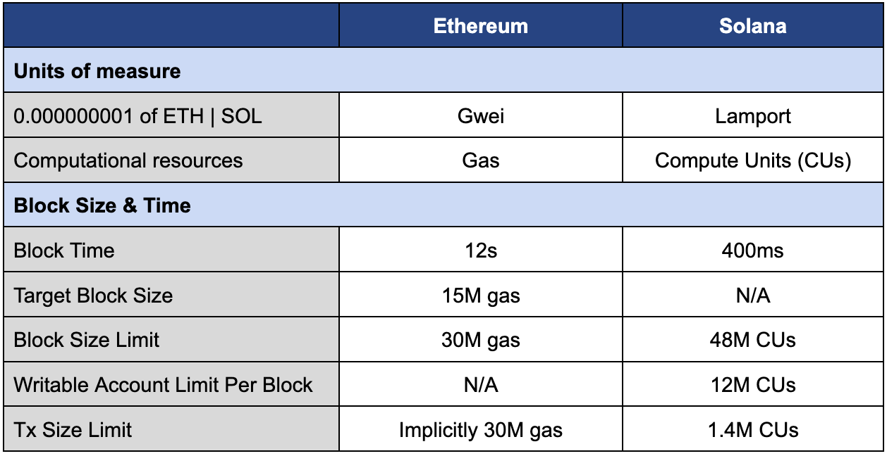 The technical differences between these systems are substantial. Their execution models differ dramatically. Solana processes blocks every 400ms compared to Ethereum's 12s, operating with a block size limit of 48M compute units versus Ethereum's 30M gas limit. Solana also implements specific constraints, limiting writable accounts to 12M CUs per block and individual transactions to 1.4M CUs.