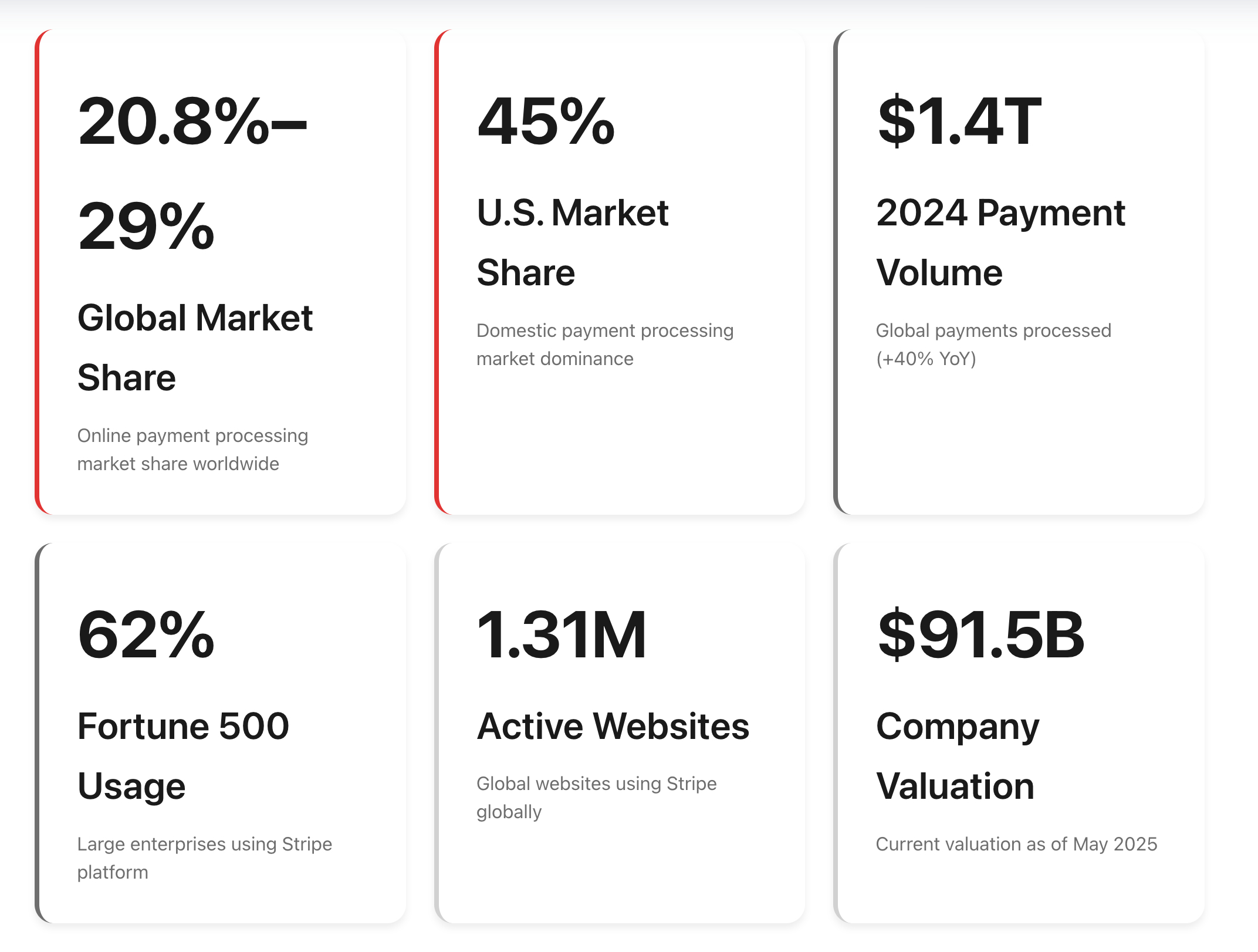 - Value-Added Services (VAS): Includes risk management (e.g., Stripe Radar), identity verification, reconciliation services, and merchant financing.