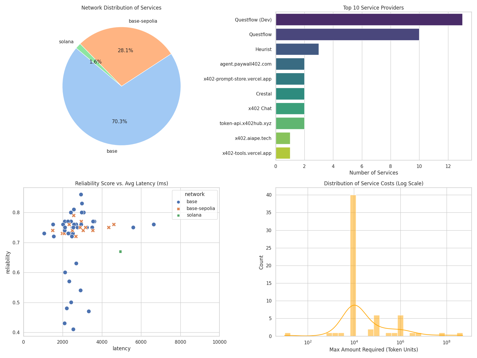 /listendpoint. - Today, Bazaar is dominated by Questflow and other providers offering “Swarm” agents for marketing, research and general tasks, along with data, infrastructure, DeFi and social services.