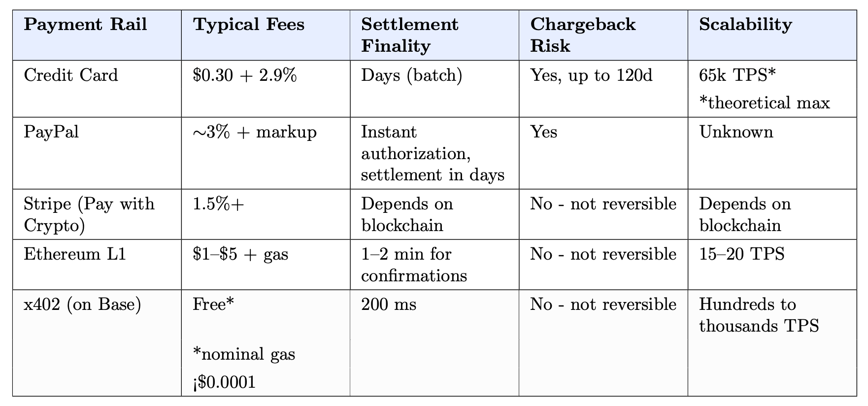 This article follows the outline implied by this table. It starts from Stripe ACP, moves through A2A/AP2, and then focuses on x402 and its supporting Ethereum standards, before ending with ecosystem developments, limitations and long‑term bets around players like Coinbase and Cloudflare.