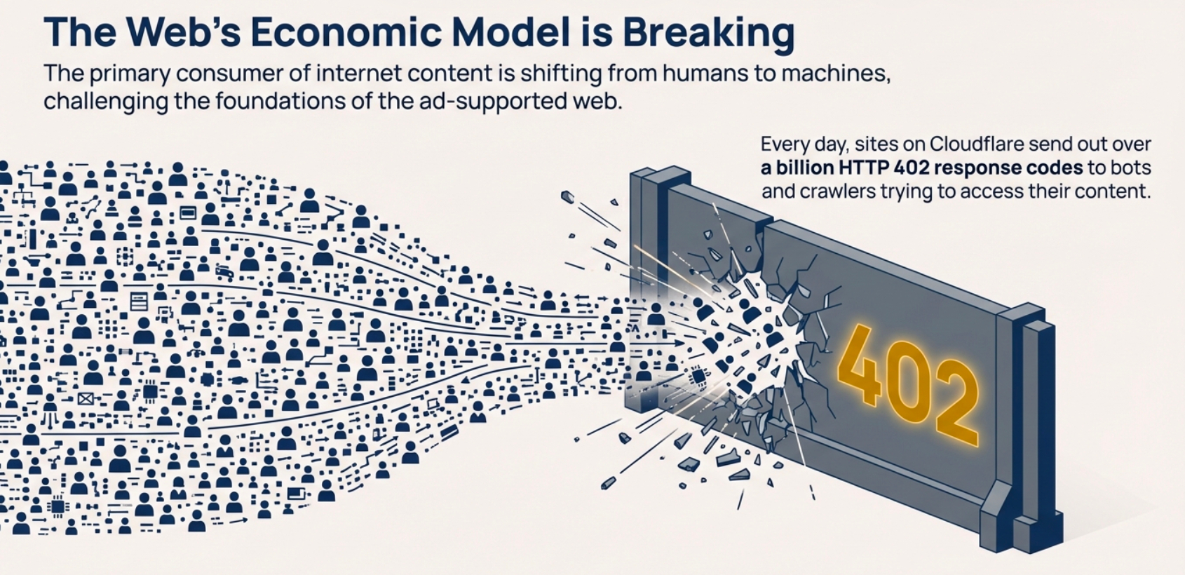 Cloudflare’s interest in x402 and “pay per crawl” fits neatly into this picture. As an edge network in front of a large share of web traffic, it is in a unique position to enforce 402-based gates on behalf of content owners. Rather than trying to block bots with CAPTCHAs or IP bans, Cloudflare proposes to change the economics of crawling so that large-scale scraping becomes unprofitable unless the scraper is willing to pay.